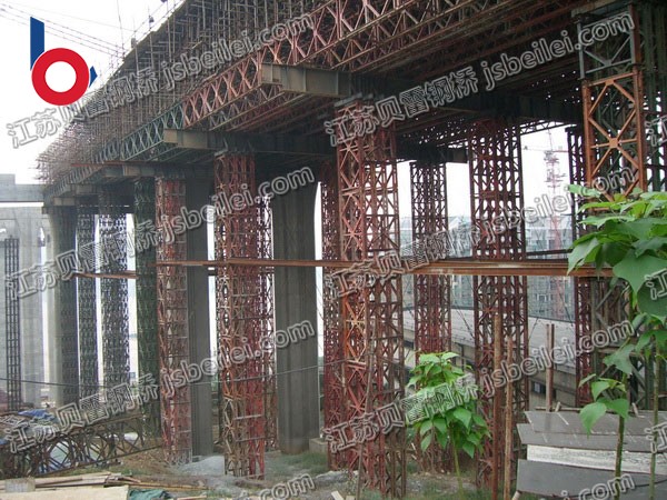 貝雷片可用于公路橋梁,拼裝龍門吊車,導梁,架橋機,吊籃等.貝雷桁架組合門式起重機,采用裝配式公路鋼橋構件拼裝龍門架,而且其跨距與立柱高度可調,以適應不同的工作場地,廣泛應用于公路、鐵路、市政、建筑、水利等建設項目、橋梁施工預制場起吊移運預制構件、橋墩旁運裝大梁等現(xiàn)場施工作業(yè)。