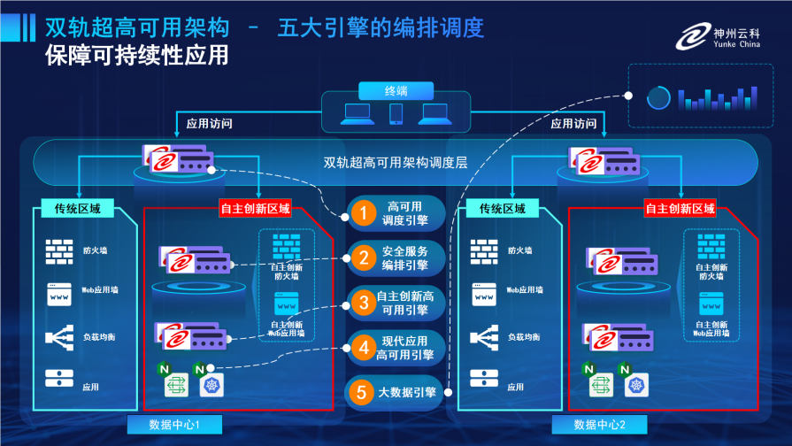 為滿足數據中心雙軌建設信創區和非信創區跨域協同,熊猫体育官方网站通過5大引擎實現雙區無縫切換,跨域協同。
